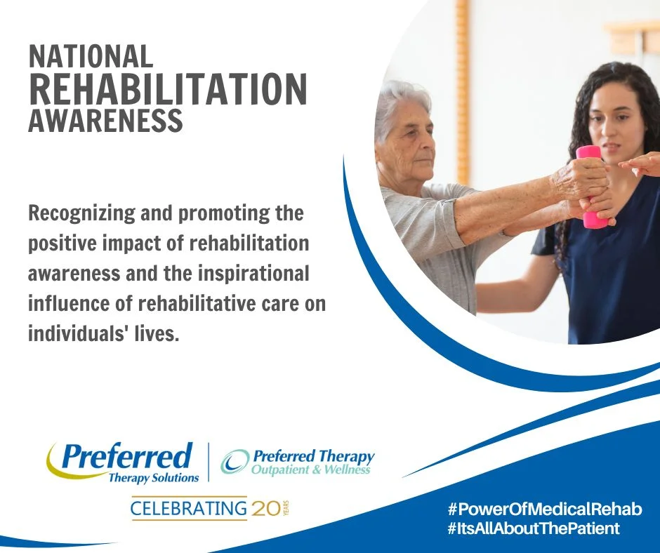 During the third week of September, the American Medical Rehabilitation Providers Association (AMRPA) celebrates National Rehabilitation Awareness Week, with this year's theme addressing #PowerOfMedicalRehab. Preferred Therapy Solutions is proud to raise awareness of the benefits of rehabilitation. We continue to express our deep gratitude to therapists everywhere for their continuous dedication and unwavering commitment to helping individuals on their journey to recovery and their improved quality of life. #ItsAllAboutThePatient
