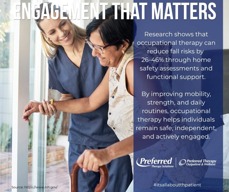 Preferred Therapy Solutions and Preferred Therapy Outpatient & Well would like to extend our sincere appreciation to the many dedicated individuals in the Occupational Therapy (OT) profession. Your unwavering commitment to helping others and building skills that support both physical and emotional well-being is to be applauded. This month, we highlight how our therapists’ purposeful engagement in personalized, tailored therapy directly enhances quality of life and long-term outcomes.