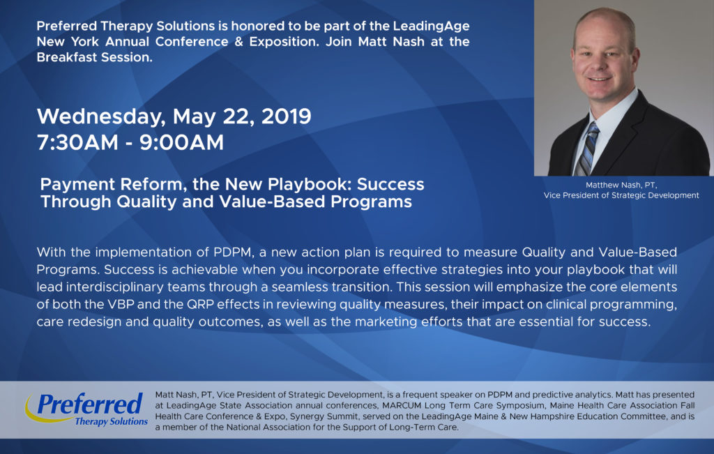Matt Nash, Vice President of Strategic Development Discusses Payment Reform, the New Playbook: Success Through Quality and Value-Based Programs at the LeadingAge New York Annual Conference.